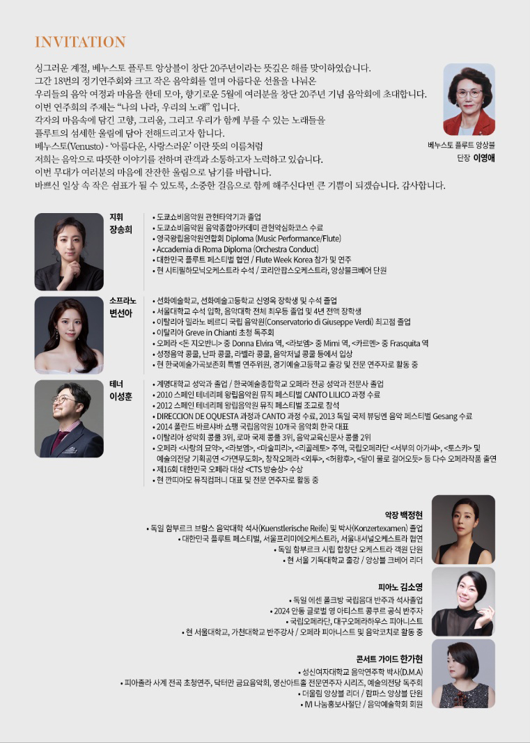 베누스토플루트앙상블 제19회 정기연주회“나의 나라, 우리의 노래” | ||